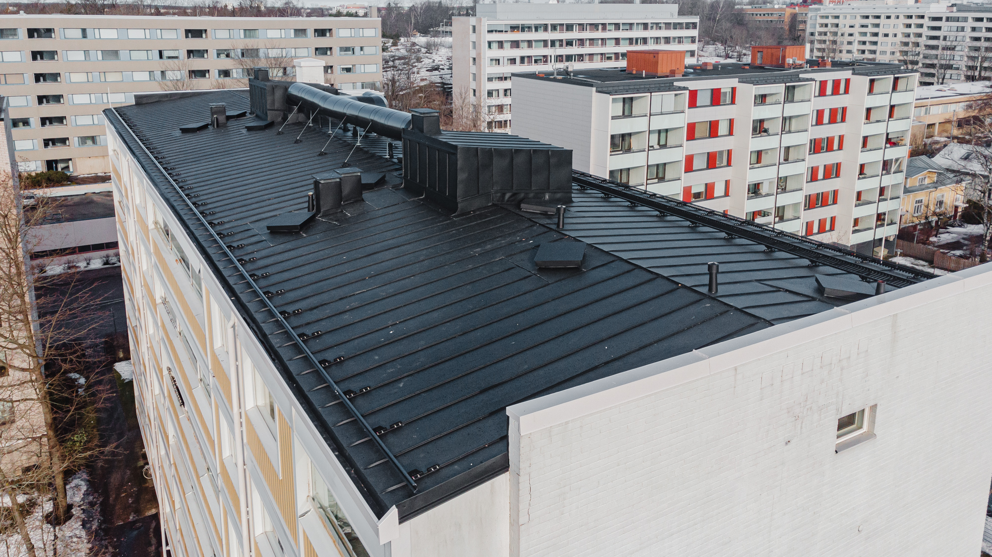 Tuplakourujen asennus, aluskatteen asennus sekä konesaumakaton asennus Suurenna kuva Suurenna kuva Suurenna kuva Suurenna kuva Suurenna kuva Suurenna kuva