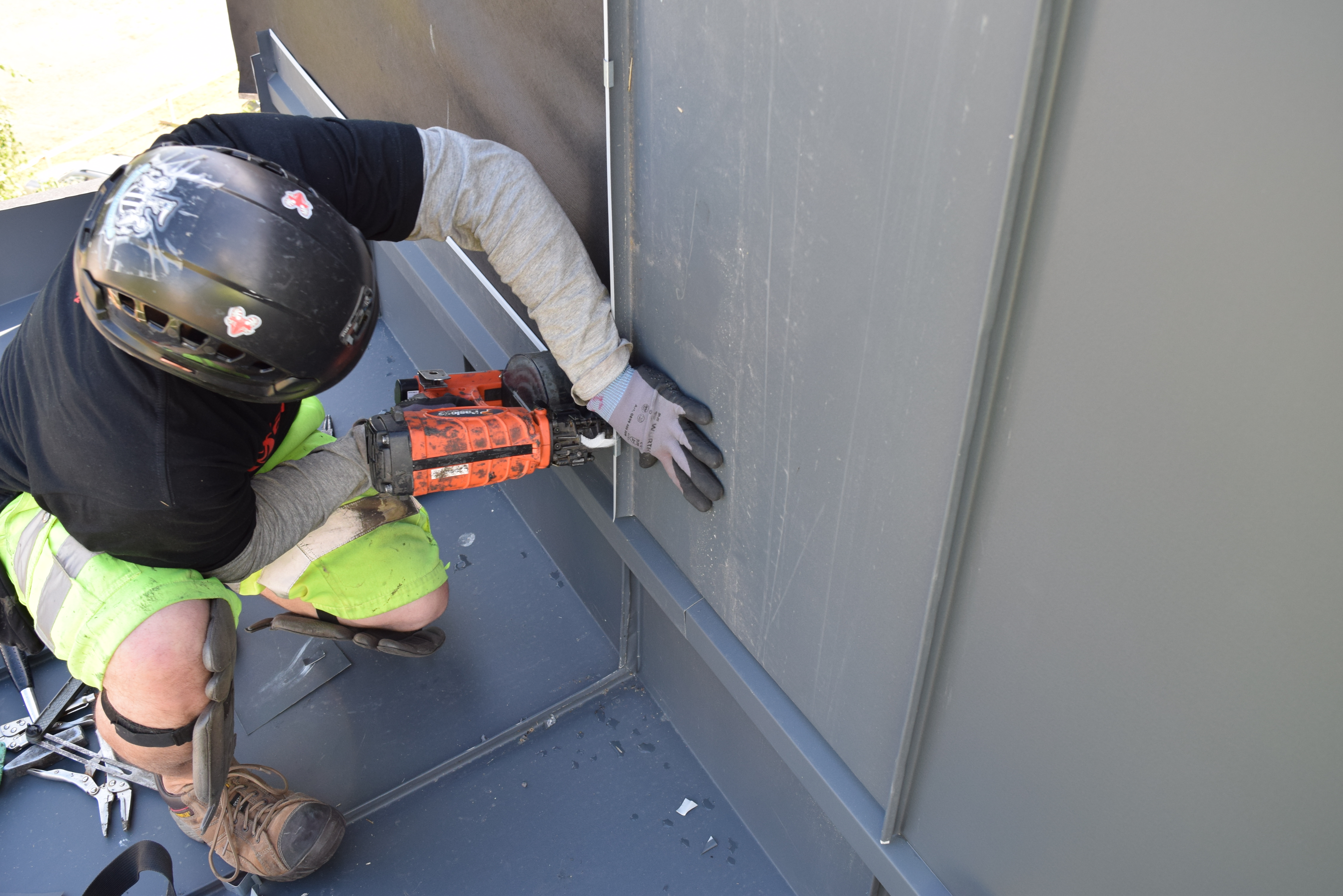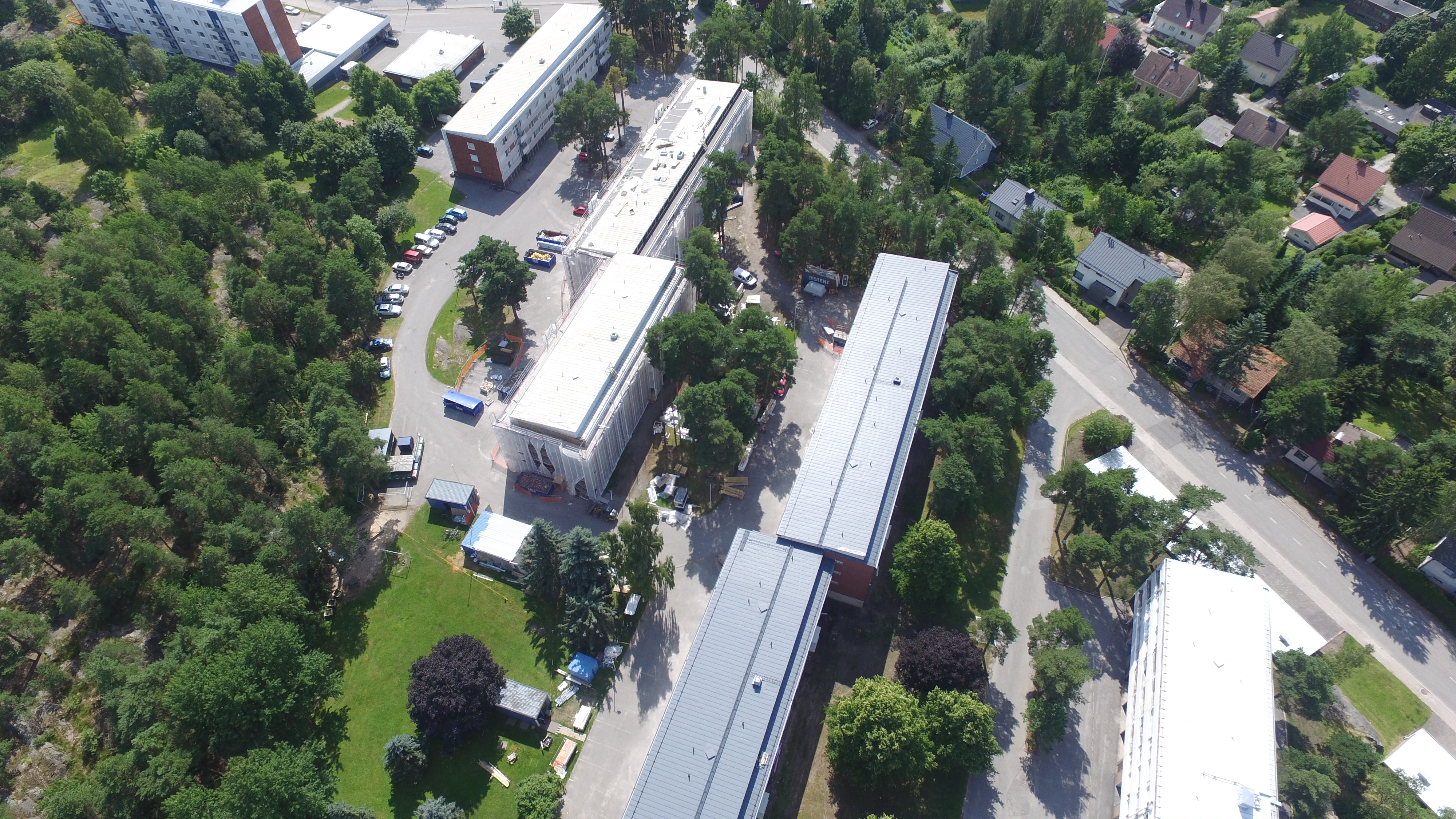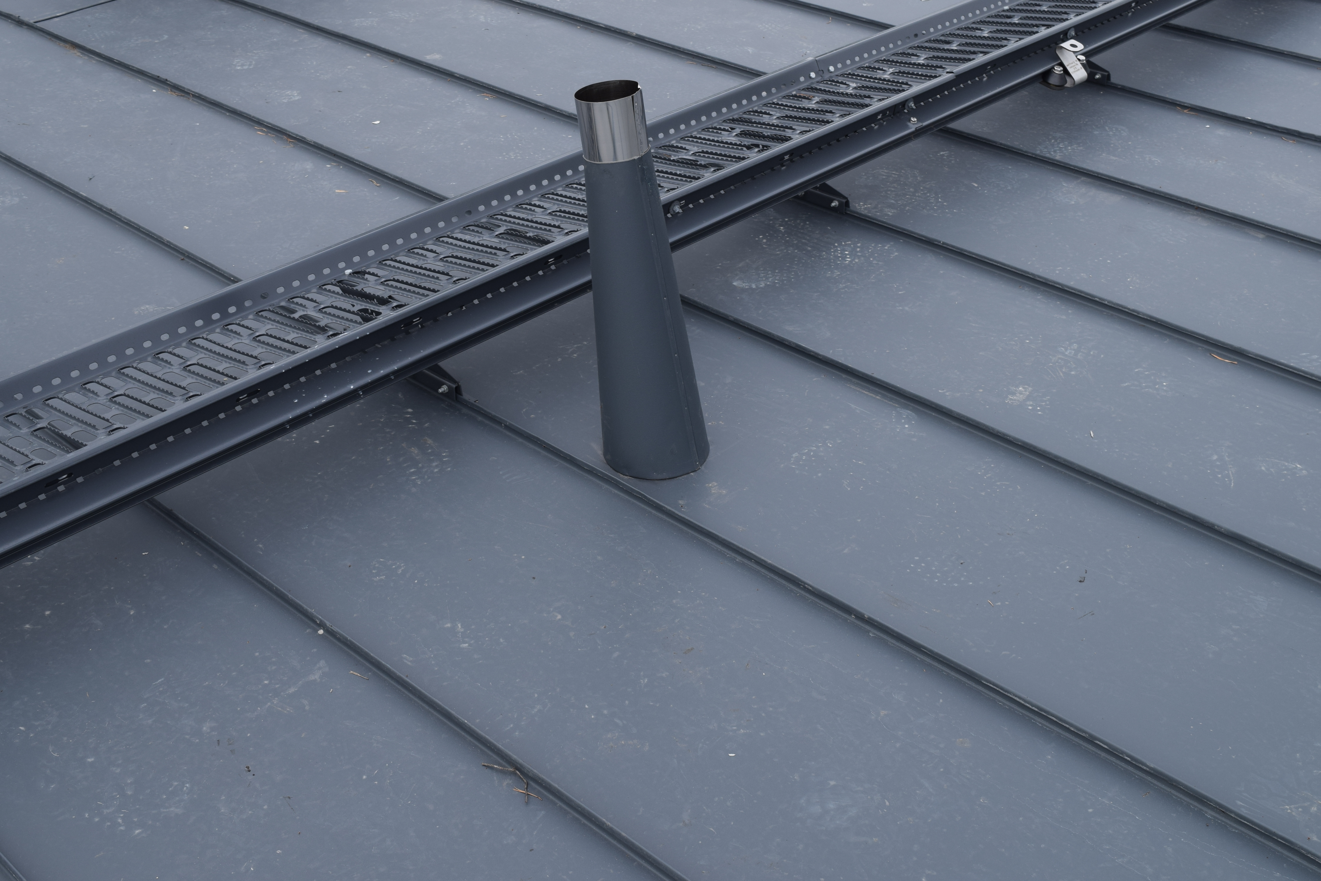 Työn sisältö: Vanhan konesaumakaton purku, kattotuolien jatko, ruoteiden uudelleen naulaus, aluskatteen asennus, konesaumakaton asennus, kattoturvatuotteiden asennus.