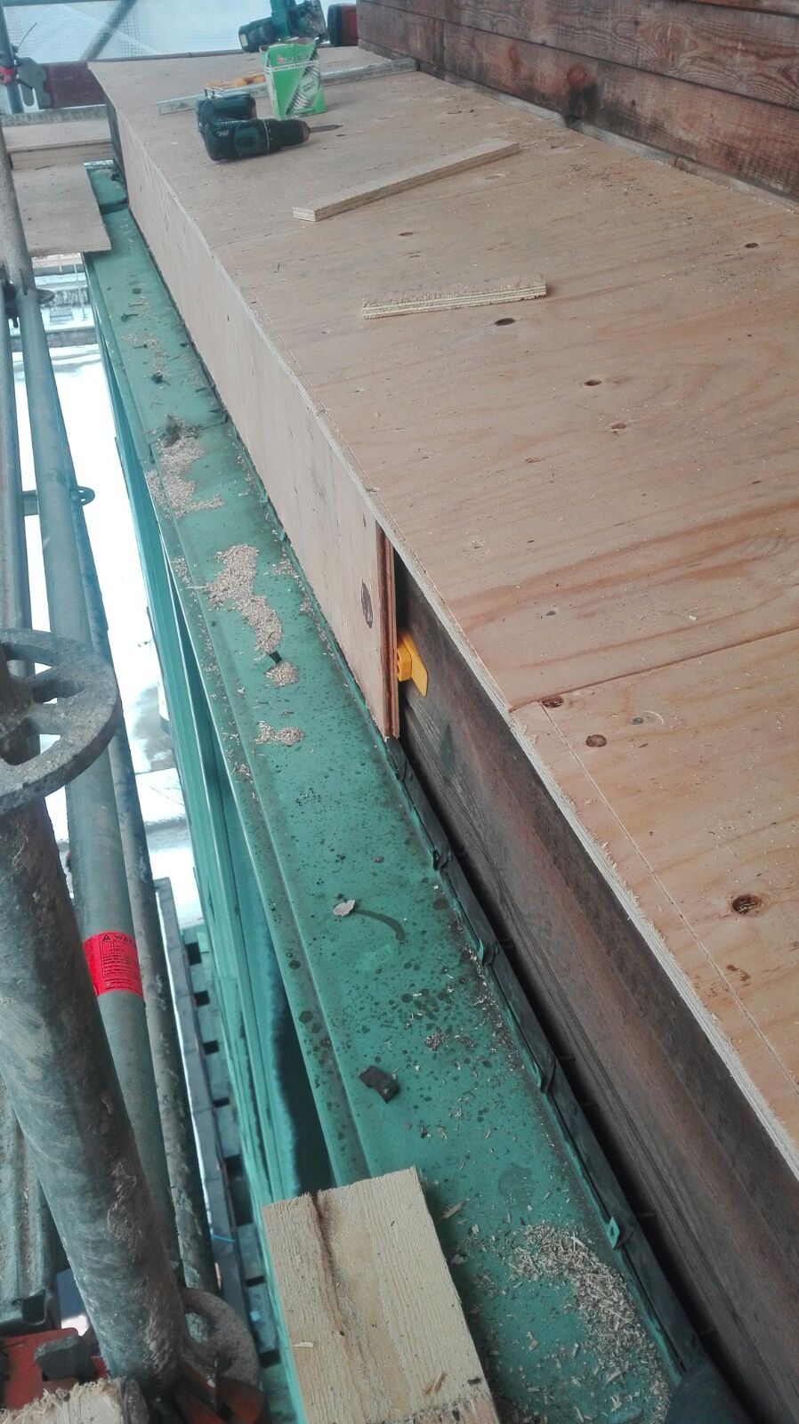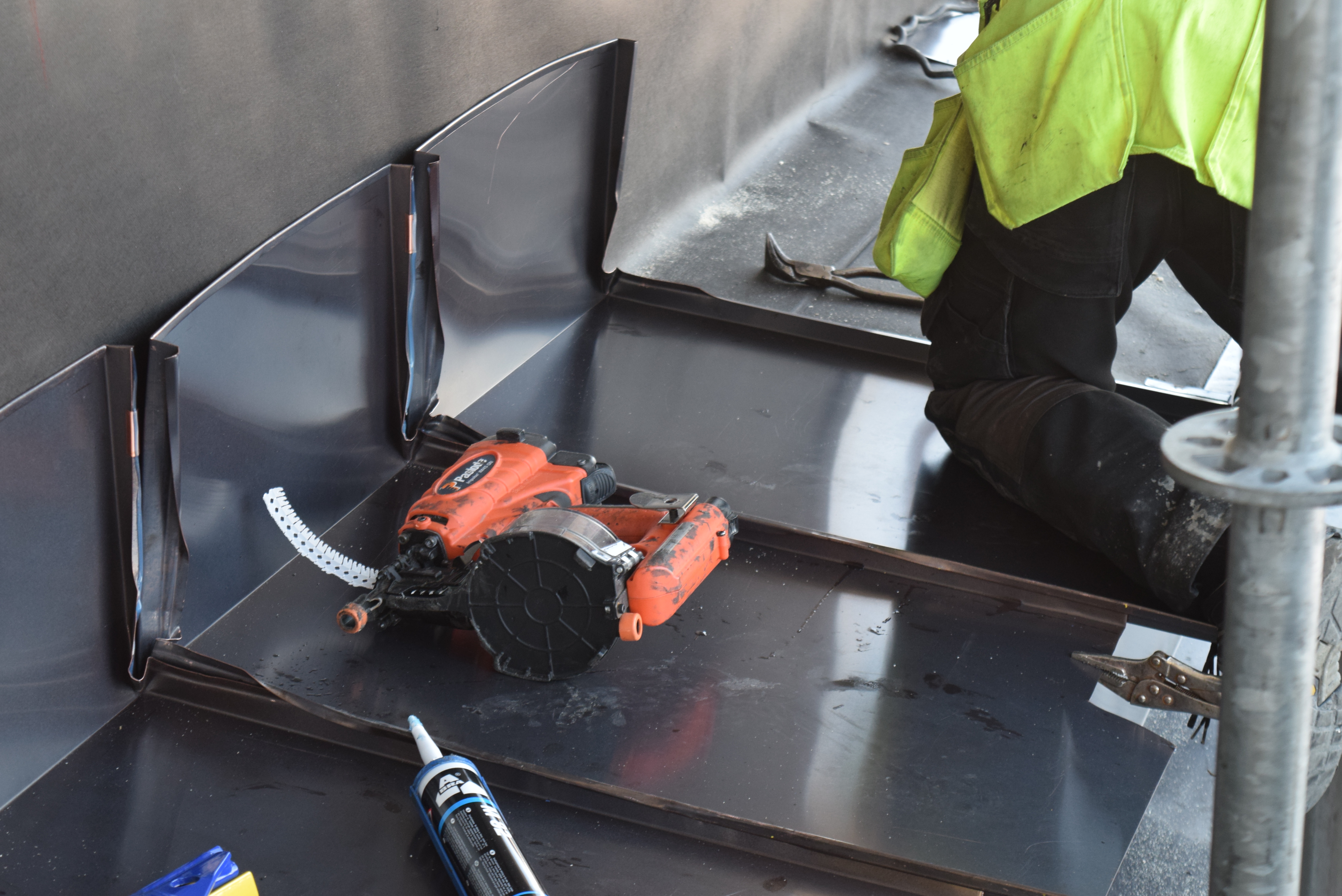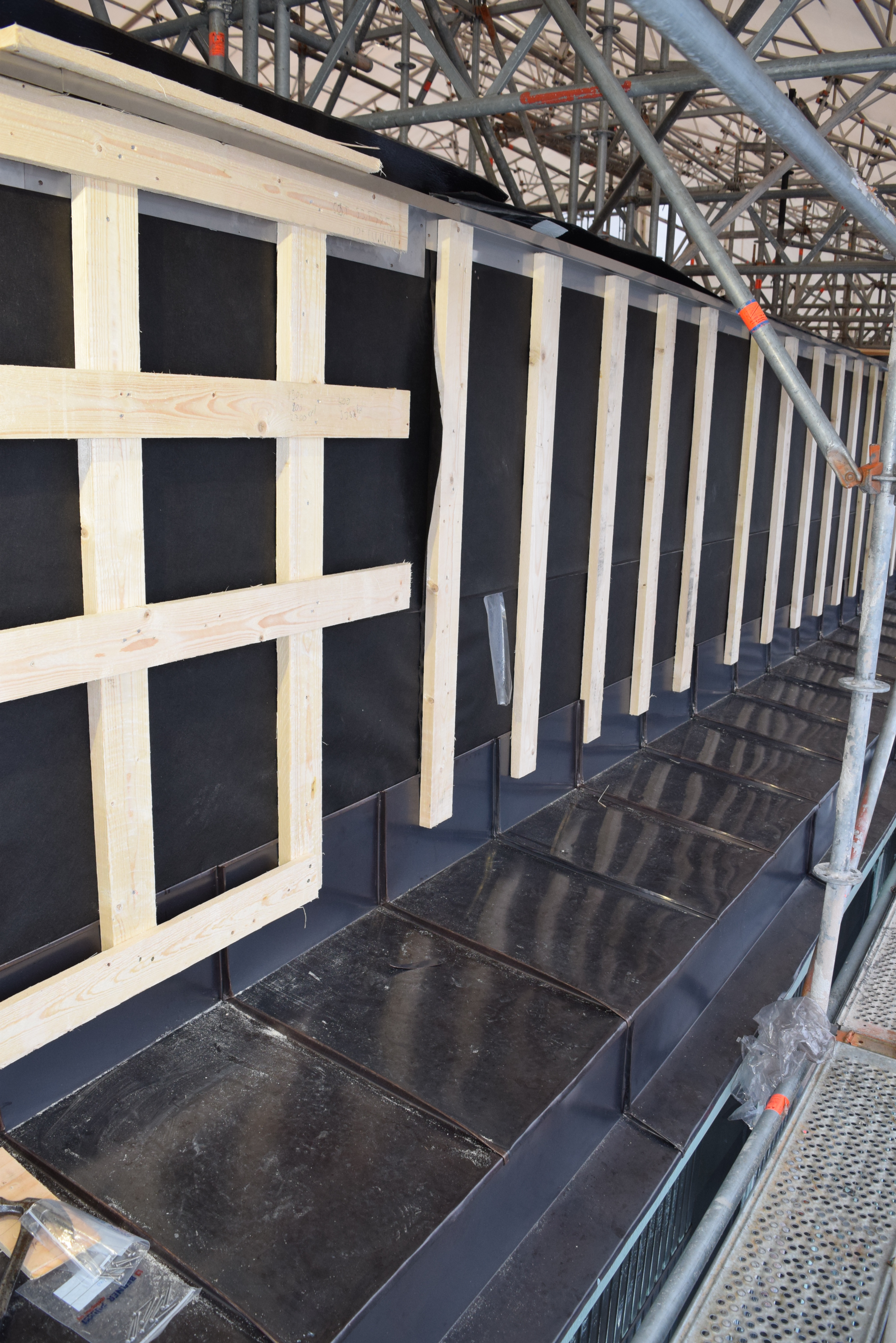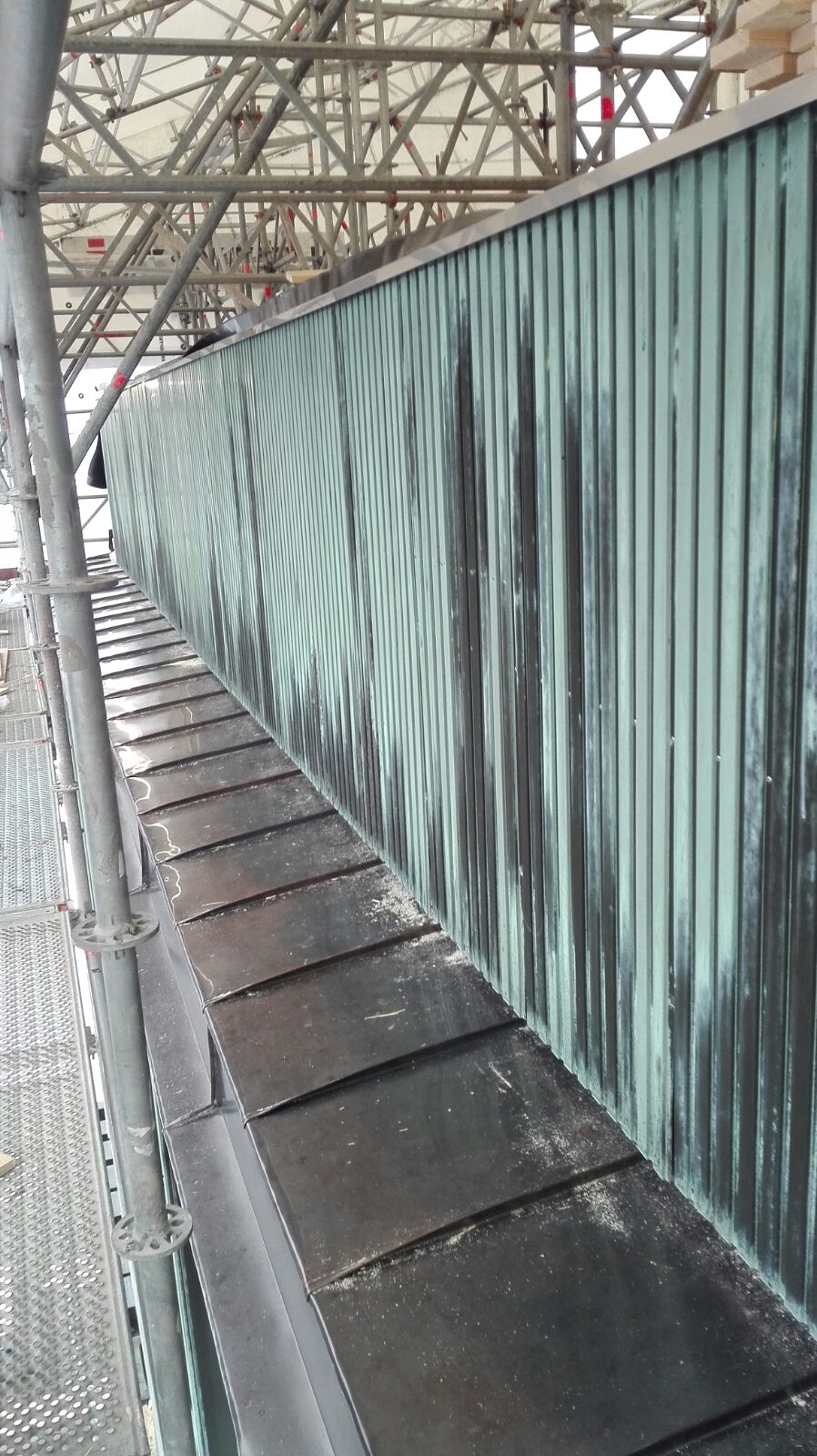 Työn sisältö: Näyttämötornin julkisivun alusrakenne- ja kuparityöt sekä alakaton julkisivun tuuletussäleikköjen teko ja asennus.